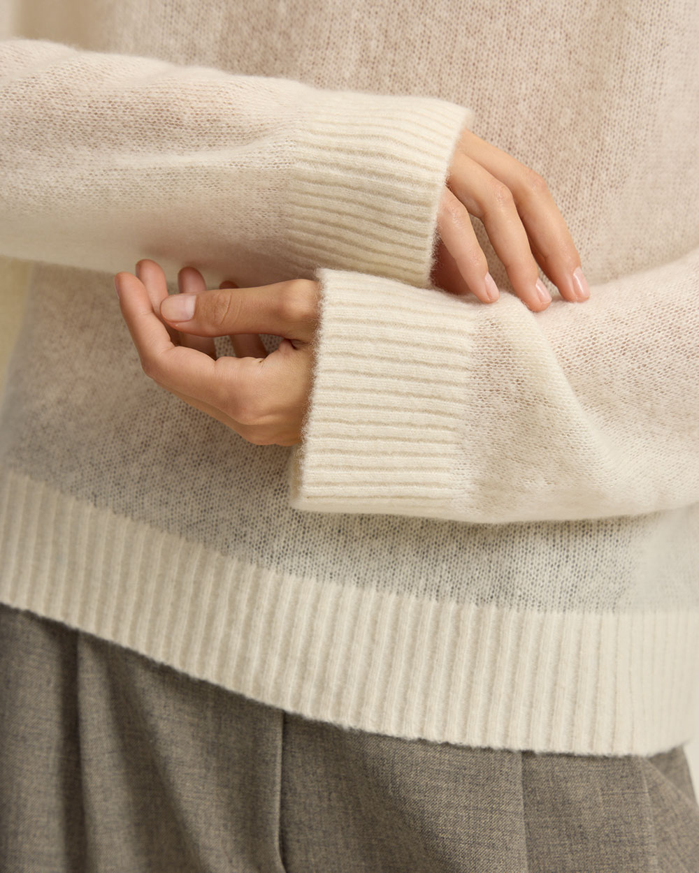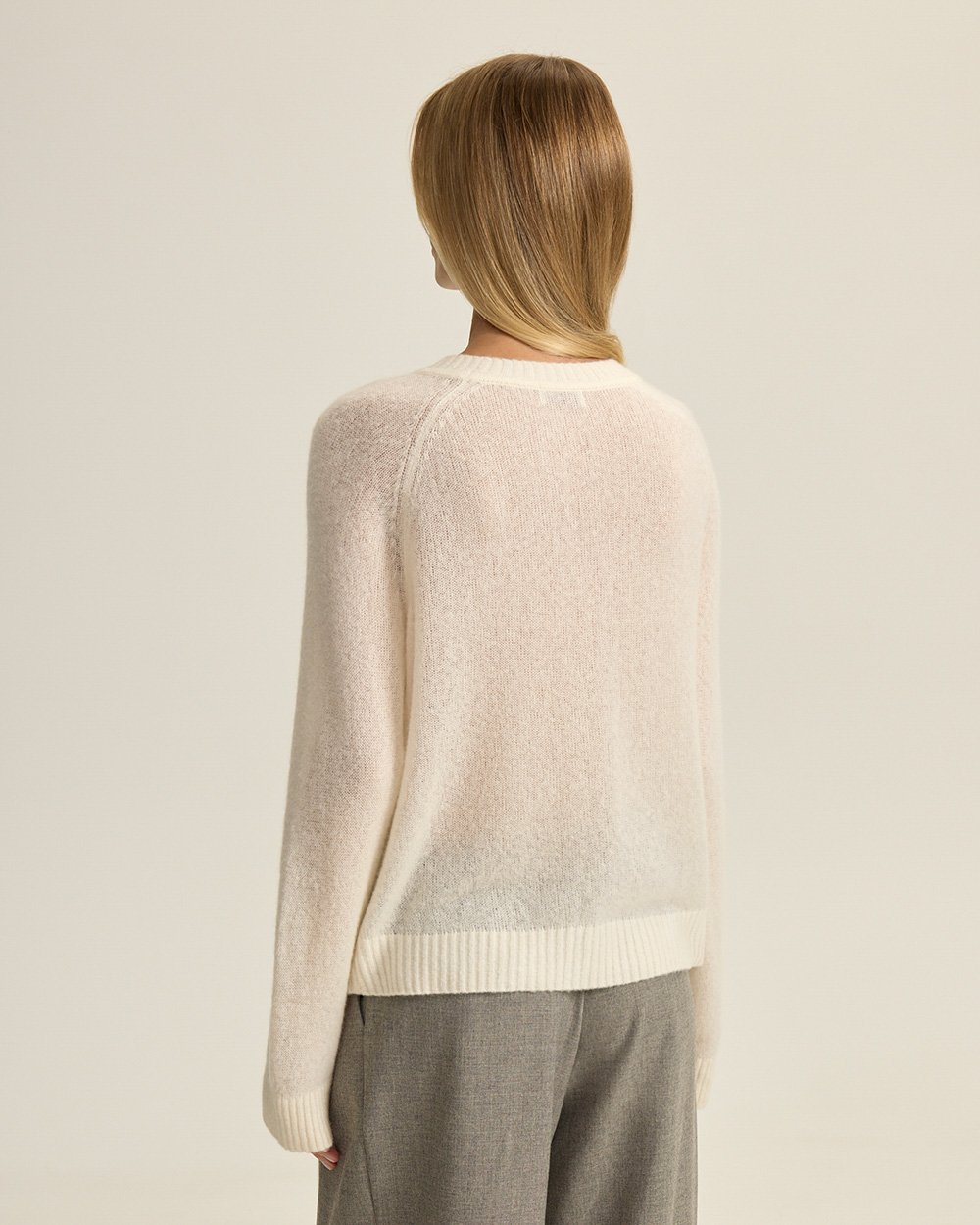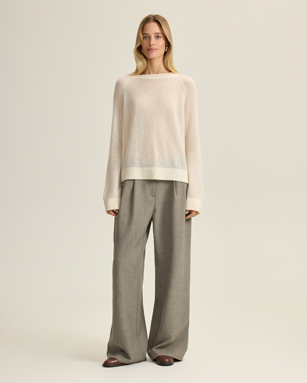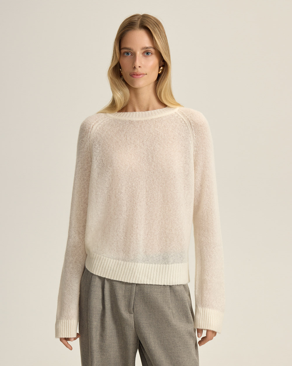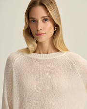 Джемпер прямого кроя из мягчайшего кашемира и шелка. Лёгкий, уютный и тактильно нежный — словно создан, чтобы дарить комфорт каждый день. Прямой крой, округлая линия плеч и слегка укороченный силуэт.