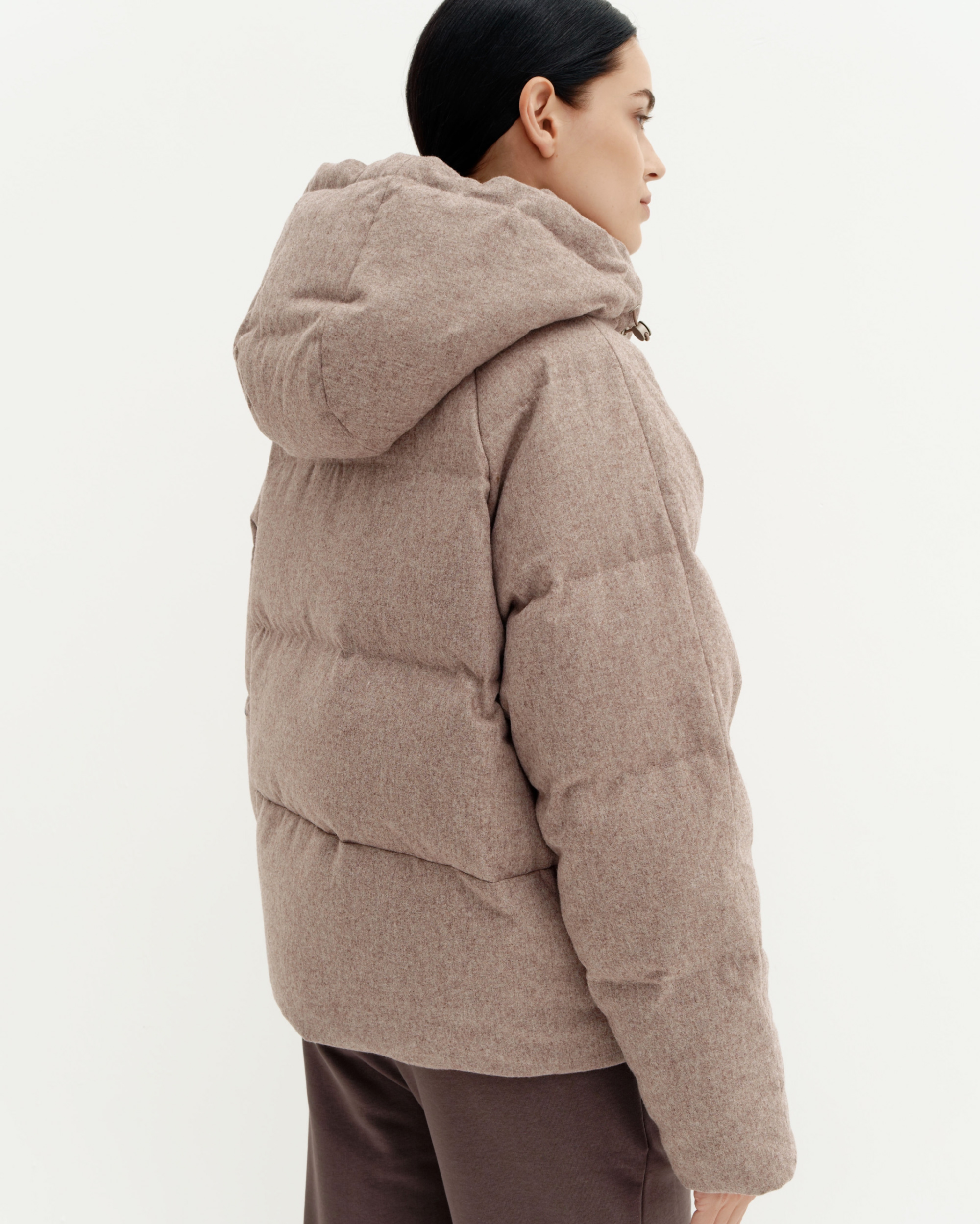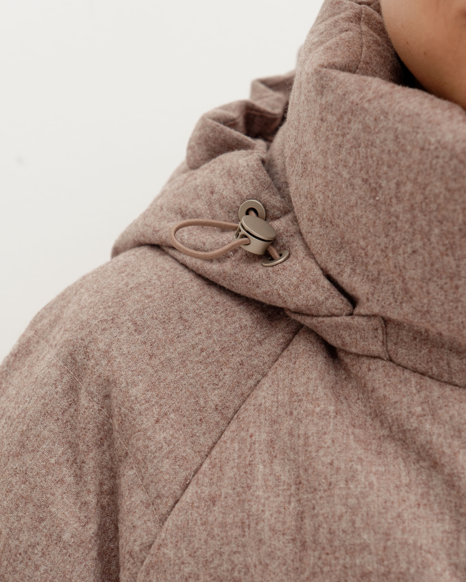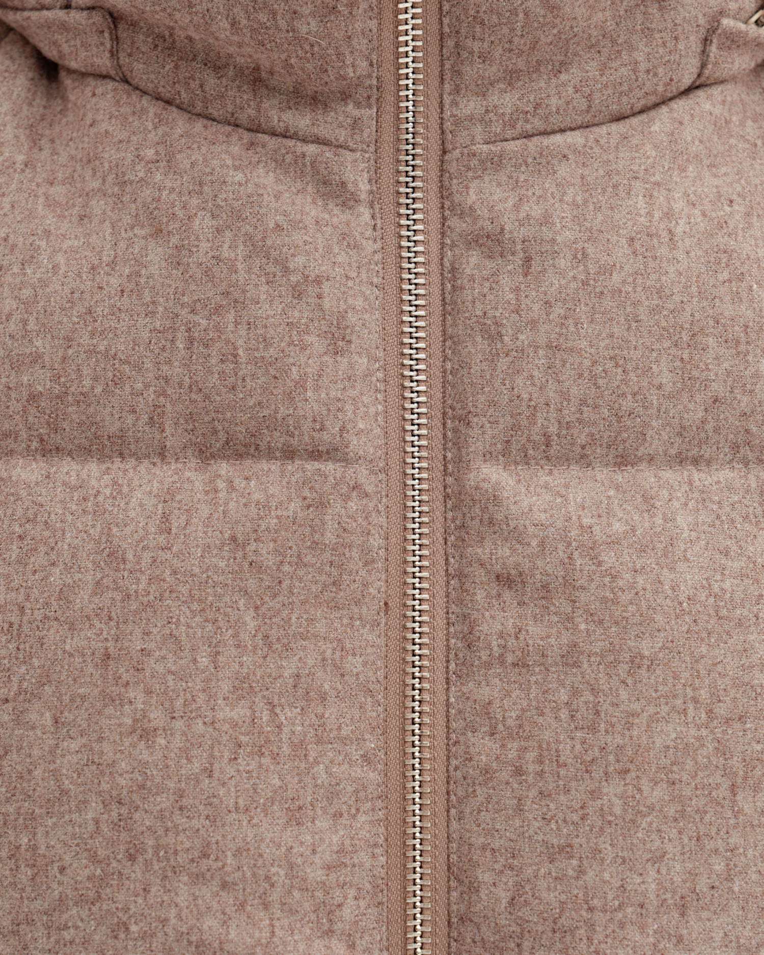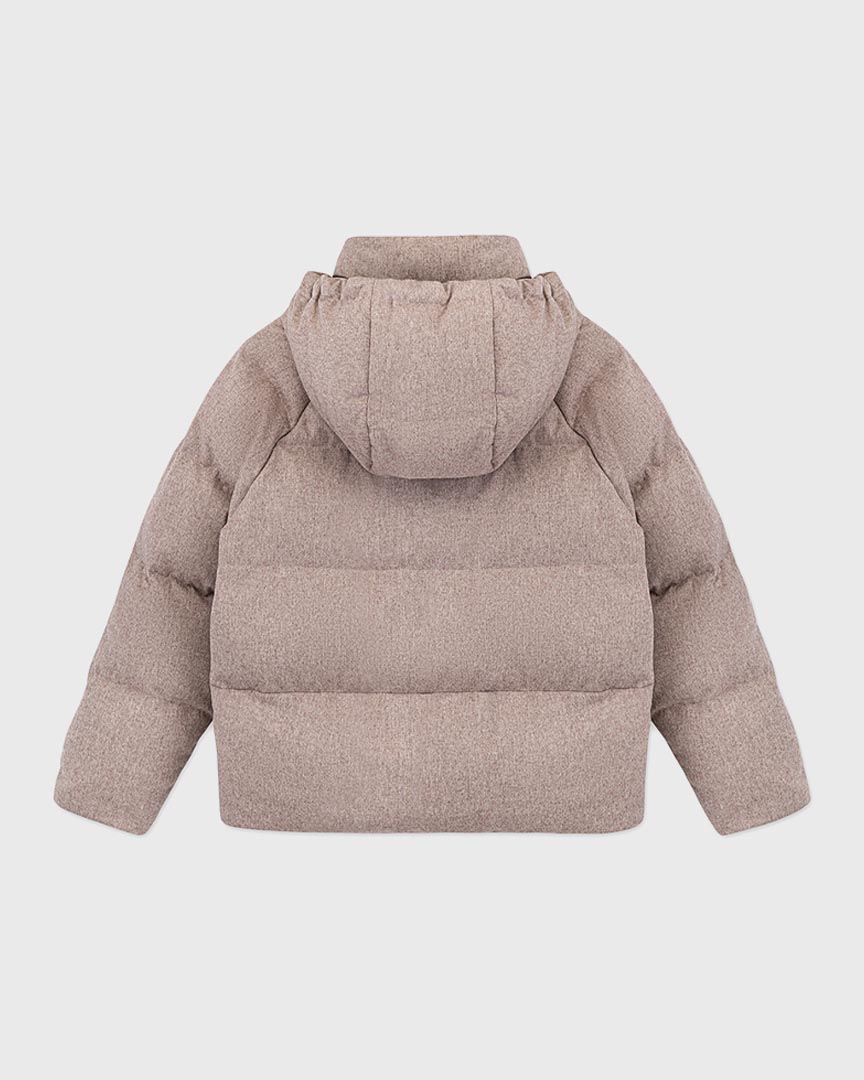 Пуховик из непромокаемой шерстяной пальтовой ткани с капюшоном, светло-коричневый