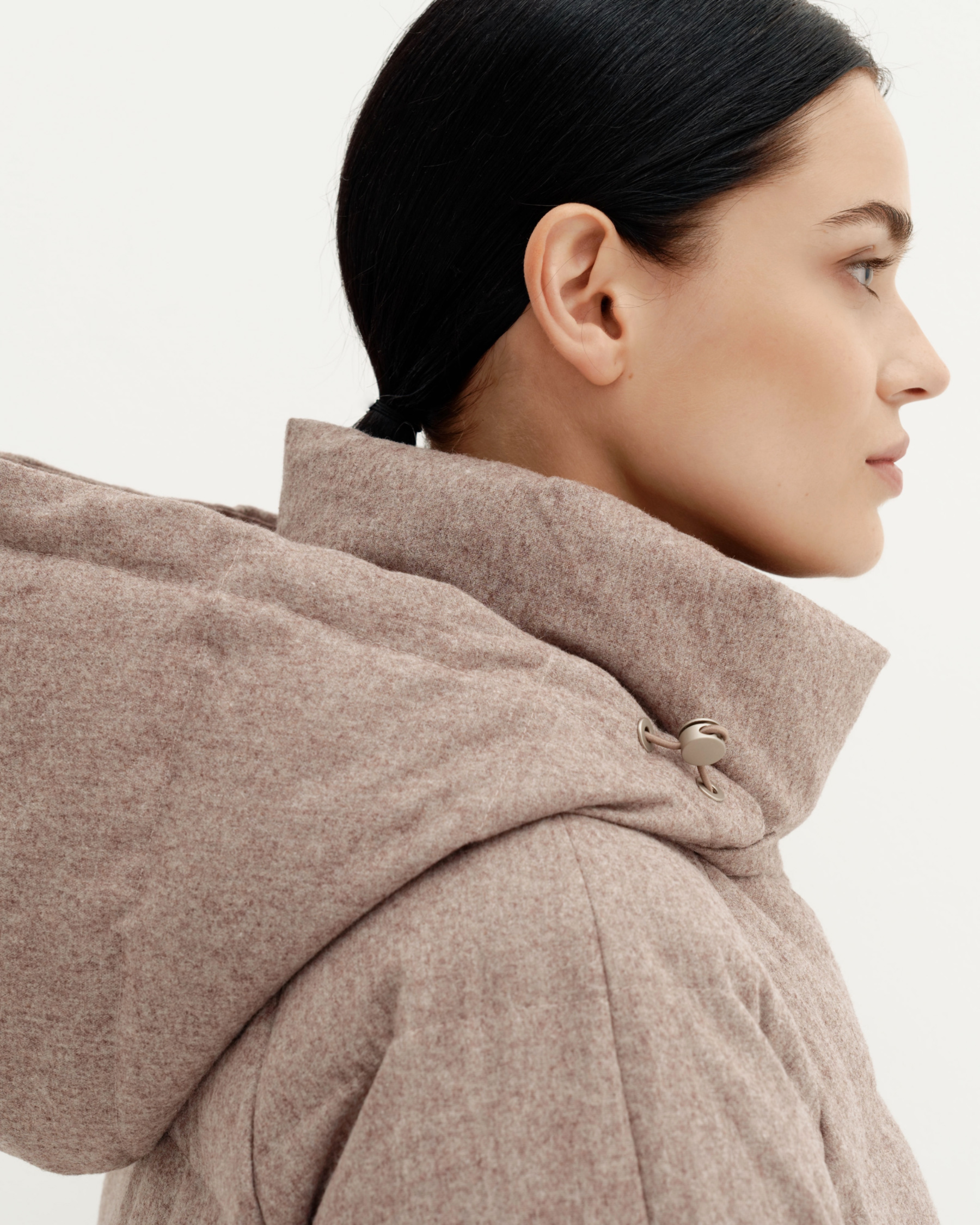 Непромокаемый пуховик и шерстяное пальто — 2 в 1! Главная особенность — в шерстяной ткани верха, напоминающей фактурную благородную ткань пальто, но непромокаемой благодаря современным технологиям.
