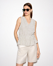 Топ трансформер с V-вырезом, на завязках, из хлопка с модалом, белый в полоску