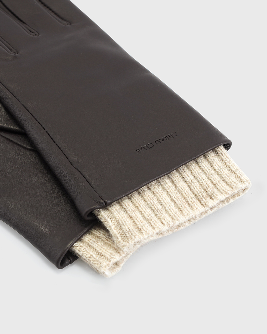 Перчатки из натуральной кожи с шерстяным манжетом, коричневый