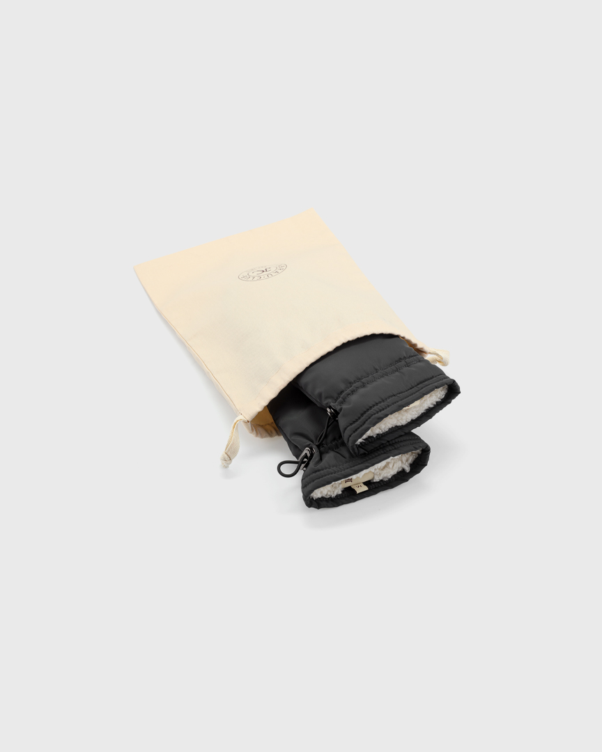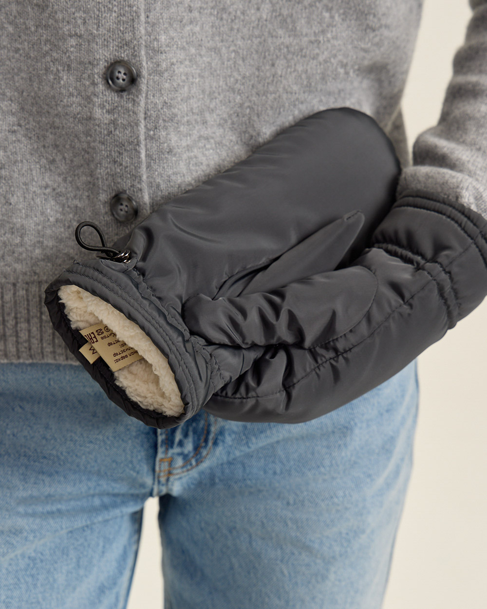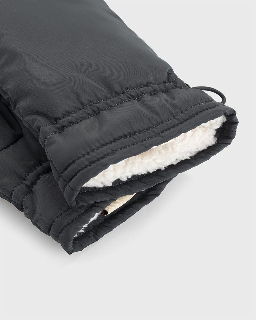 Варежки женские объемные, на контрастной утепленной подкладке из искусственного меха молочного оттенка, с кулиской и металлической фурнитурой в оттенке темный никель. Модель выполнена из плотной матовой непромокаемой ткани и отлично дополнит ваши образы с верхней одеждой и аксессуарами из коллекции Abrau Club by COCOS.