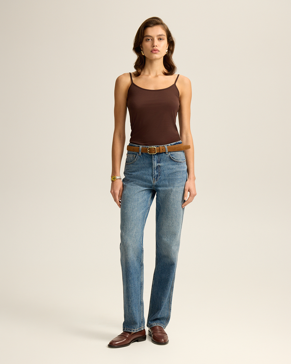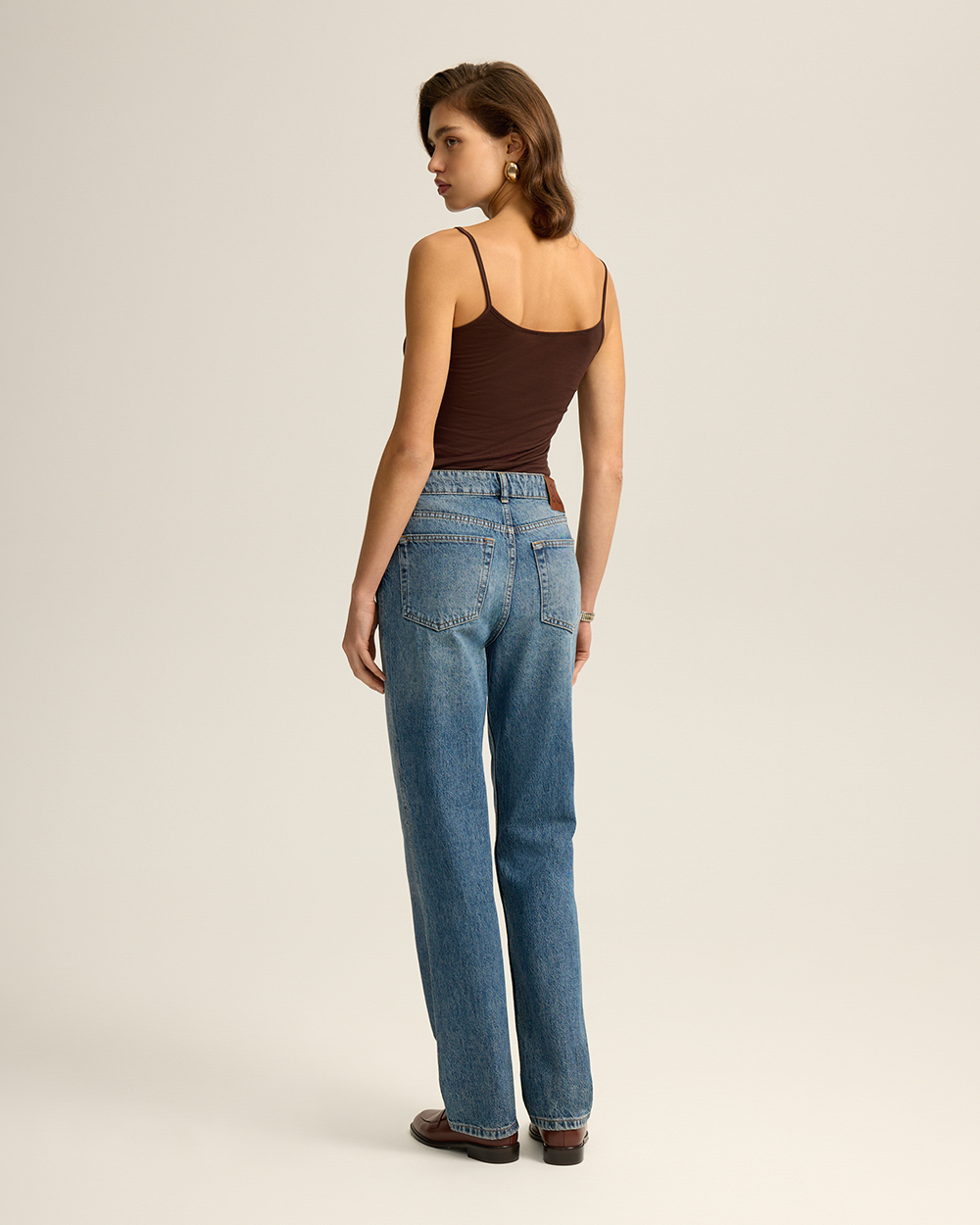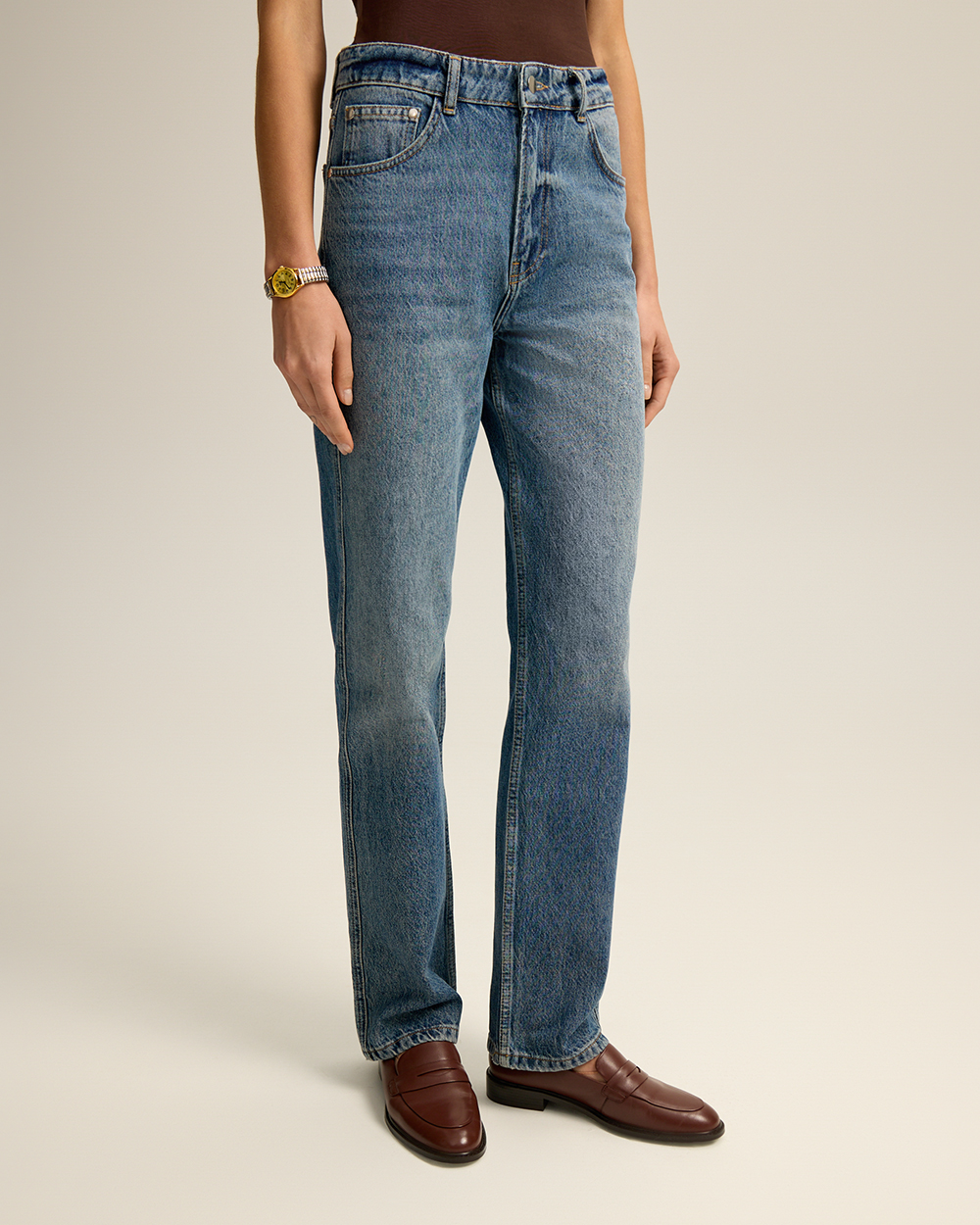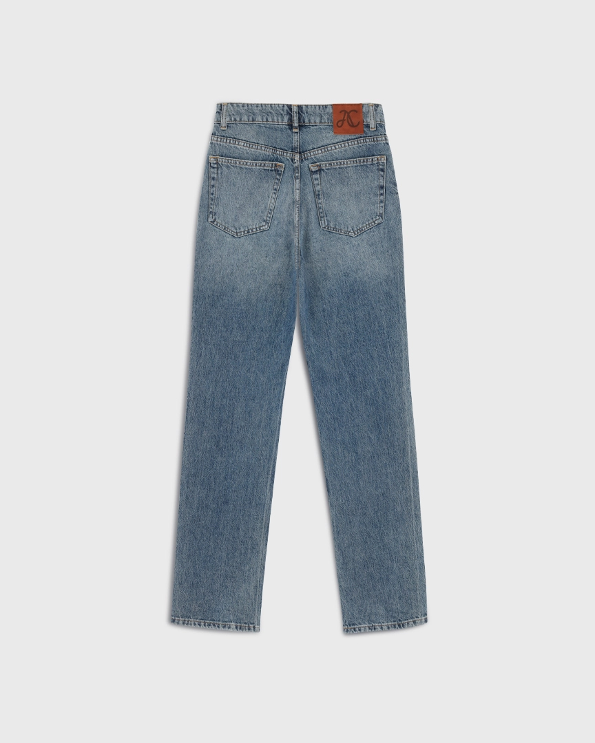Джинсы прямого кроя классической посадки. Комфортный деним из 100% хлопка с легким эффектом потертостей. Округлые карманы спереди, карманы сзади.