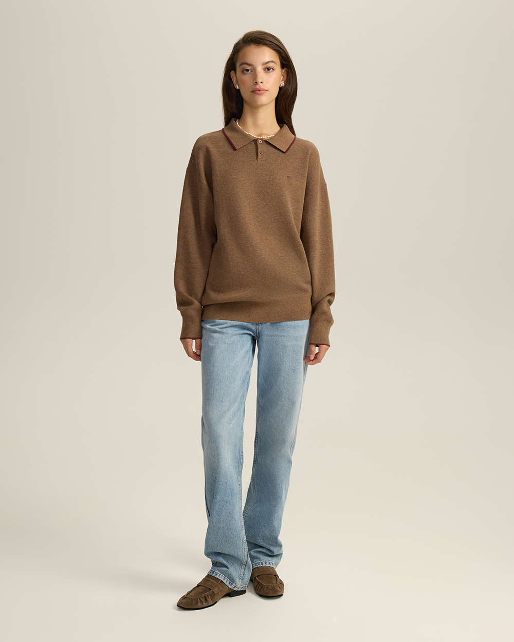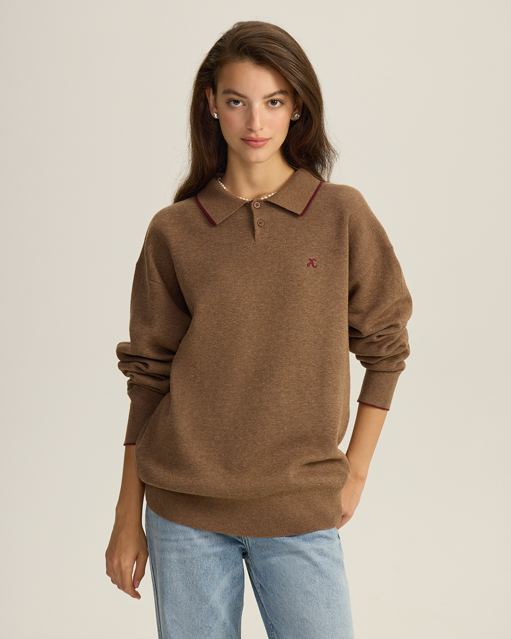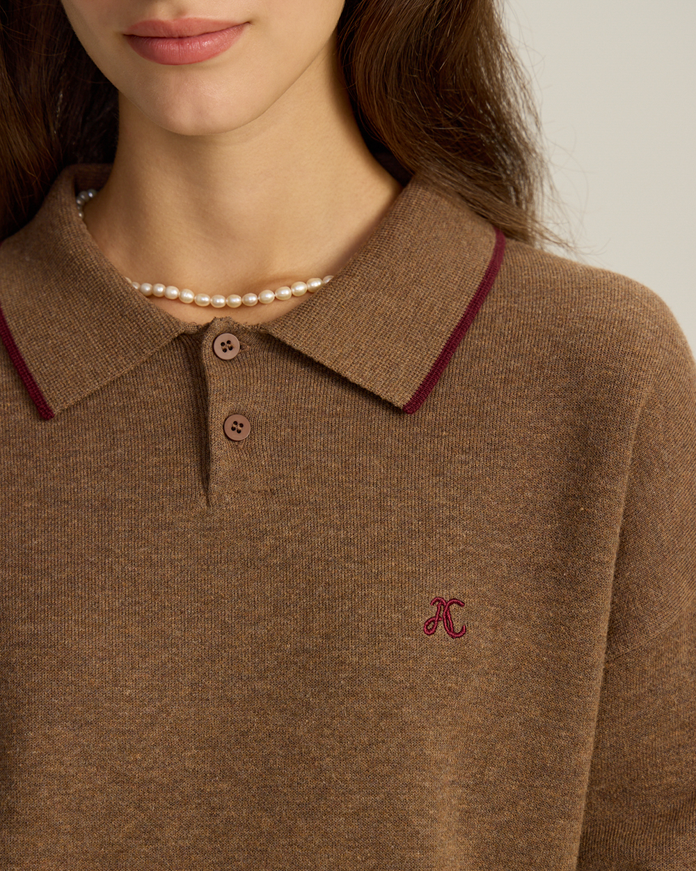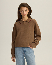 Хлопковый джемпер Unisex с воротником поло, коричневый