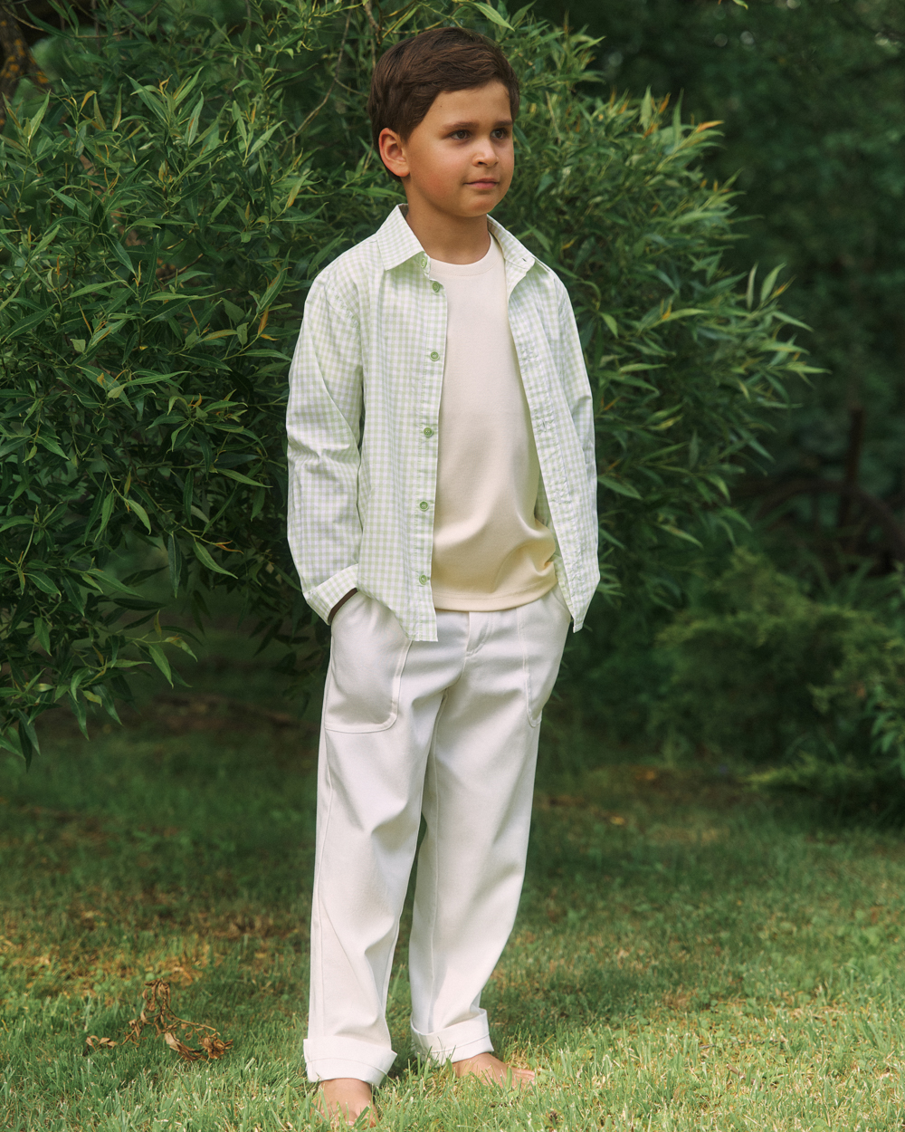Детская рубашка Unisex в клетку, зеленый
