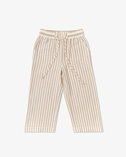 Детские брюки унисекс прямого кроя в полоску из муслина. Эластичный пояс. Передние карманы