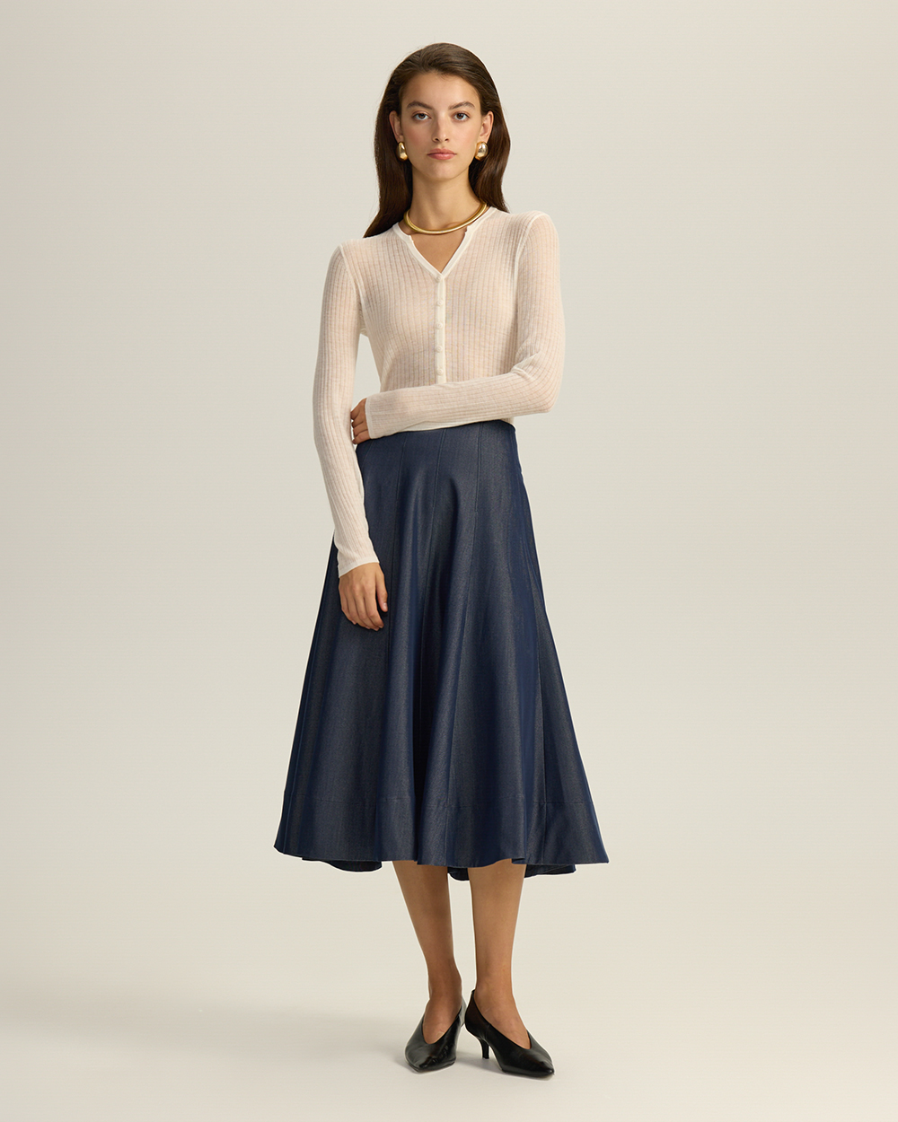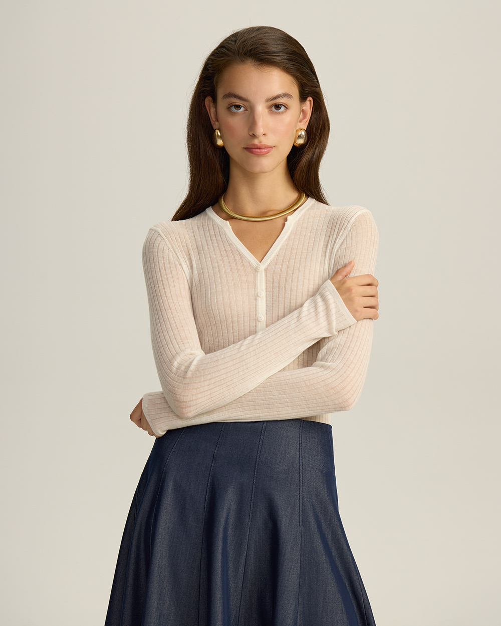 Тонкий прозрачный трикотаж – это так красиво, что уже который сезон он остается одним из самых любимых нами трендов, что подтверждают как подиумные бренды, так и модные инфлюэнсеры со всего мира. Его легко носить, просто подбирайте сочетание в зависимости от того, какой образ вы хотите создать. Можно сыграть на контрасте нежных и грубых текстур, элементов женского и мужского стиля – и надеть со свободными джинсами или классическими брюками. А можно создать подчеркнуто-женственный нежный образ со струящейся атласной юбкой.