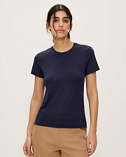 Приталенная футболка из тонкой дышащей ткани. Модель не сковывает движений и идеально подходит для повседневных и домашних образов.