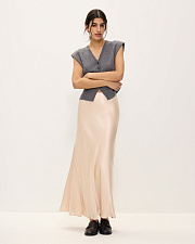 Струящаяся атласная юбка-макси, на подкладке. Застежка на молнию. Крой по косой вытягивает силуэт и подчеркивает фигуру.
