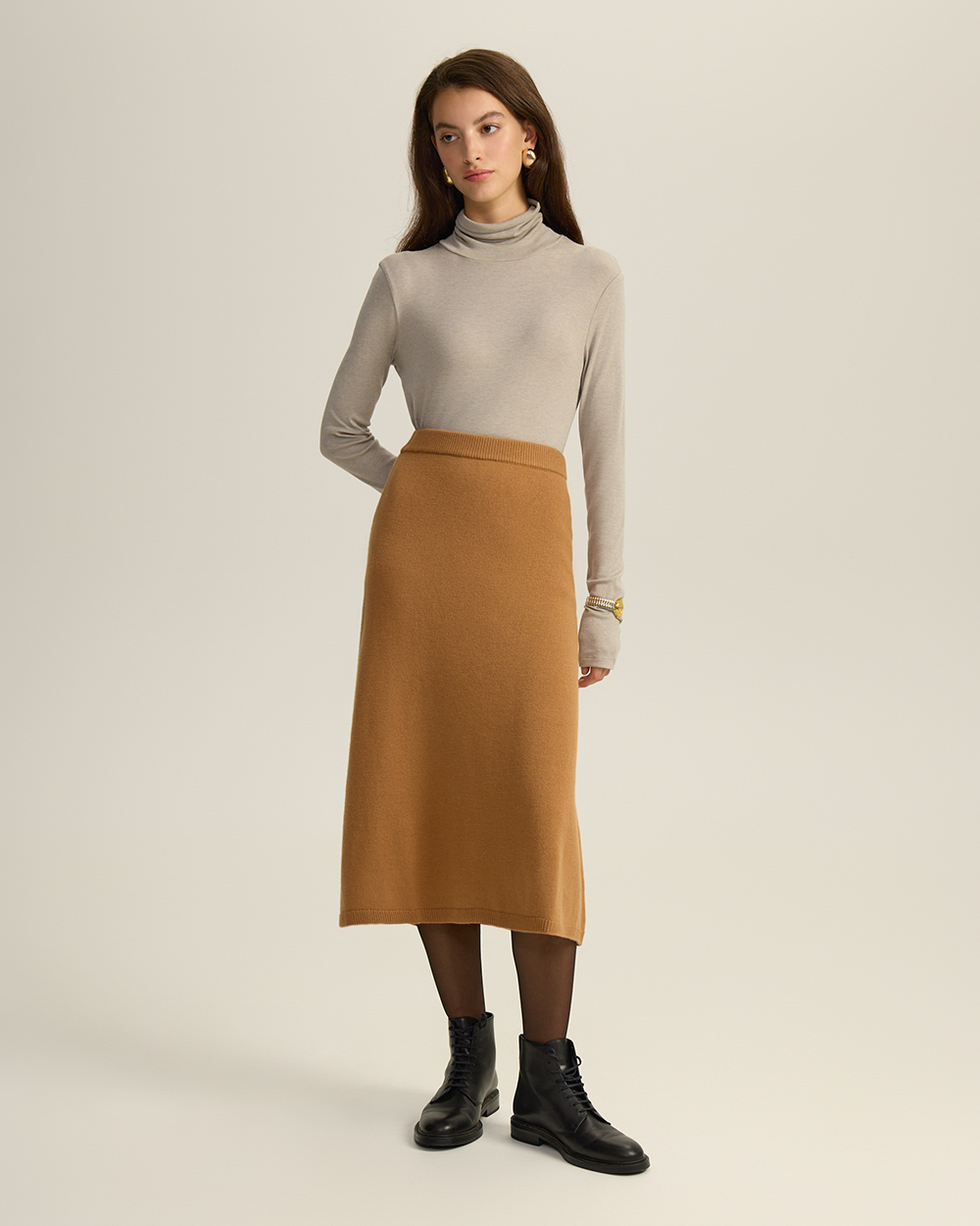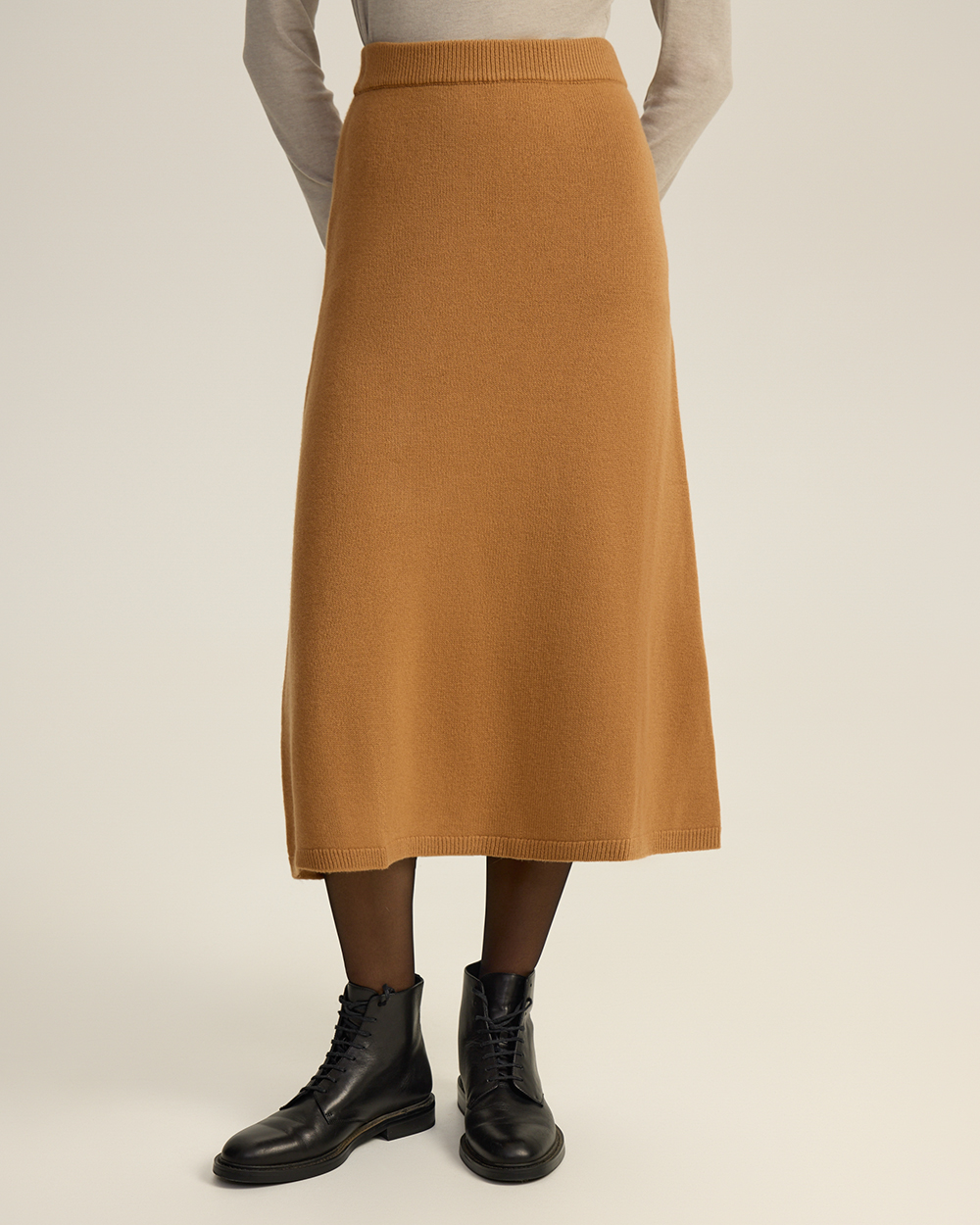 Вязаная юбка миди из 100% шерсти мериноса, карамельный