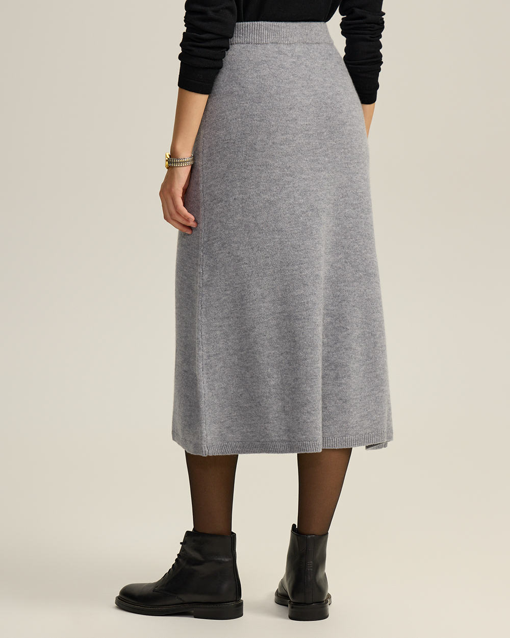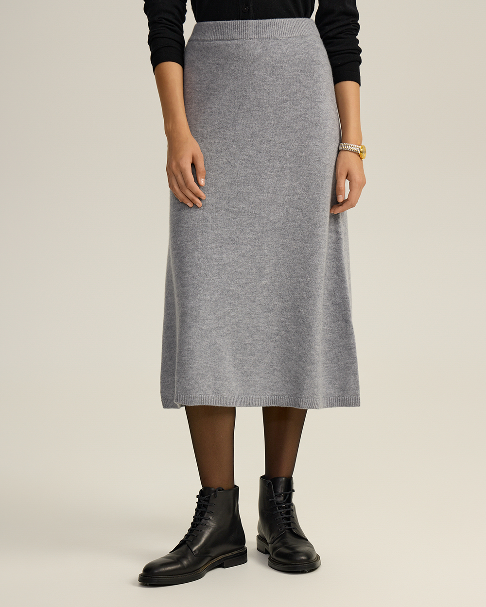 Вязаная юбка миди из 100% шерсти мериноса, серый
