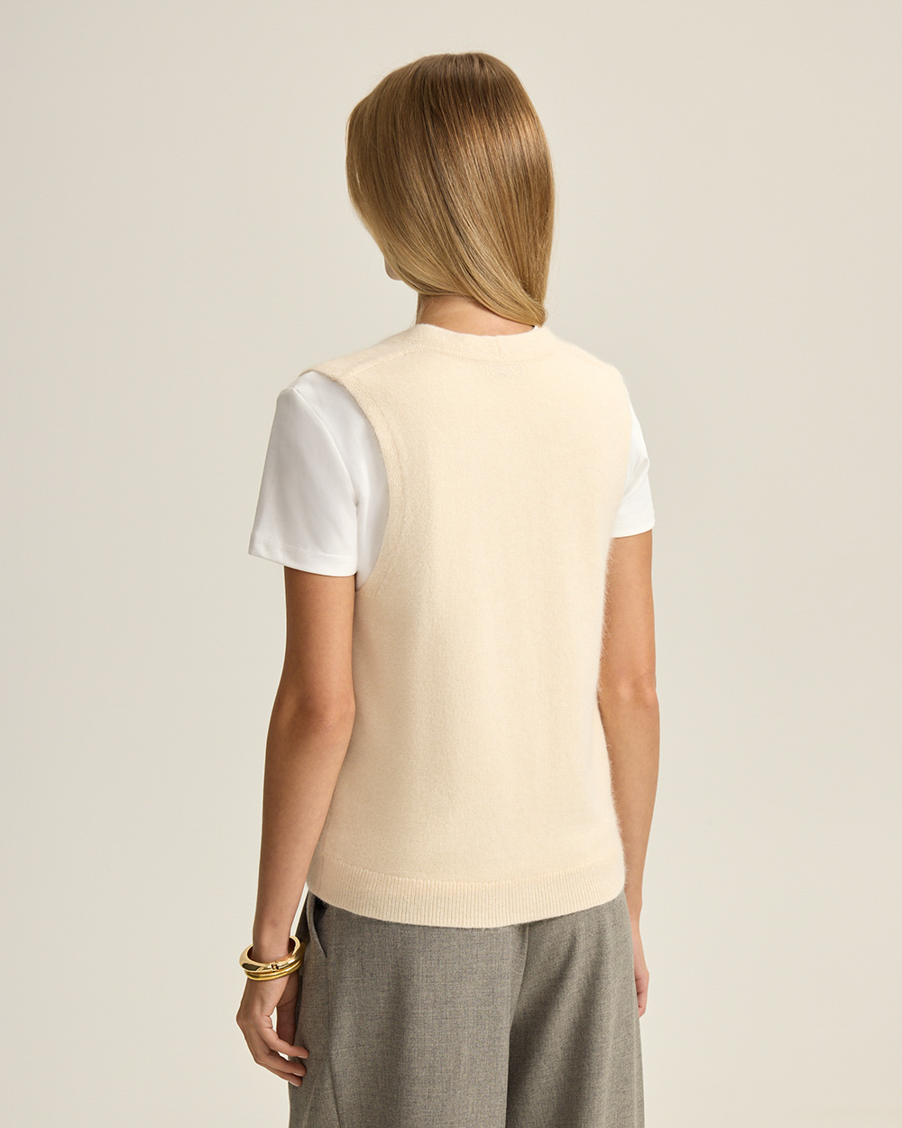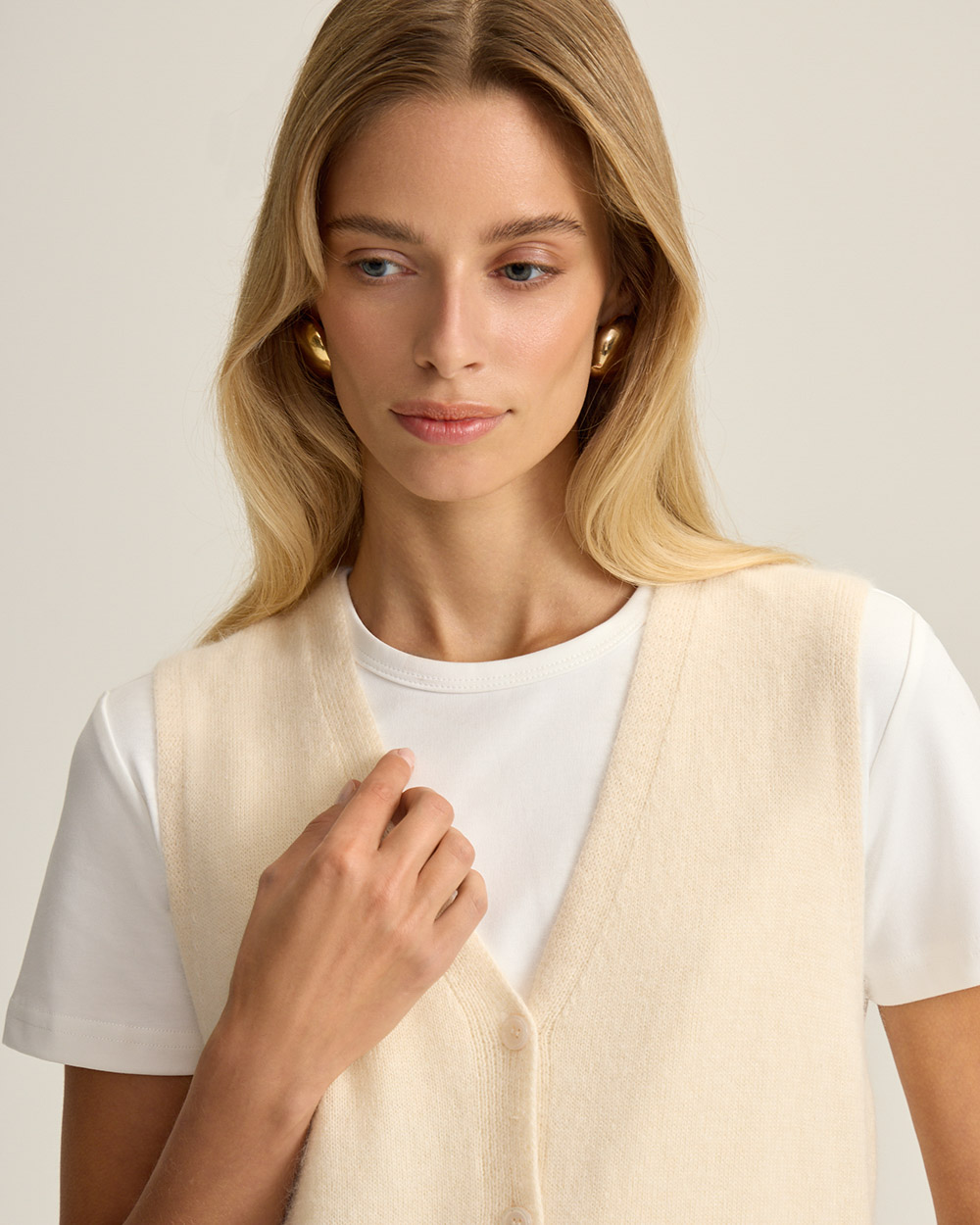 Жилет на пуговицах с шерстью ангоры, молочный