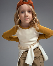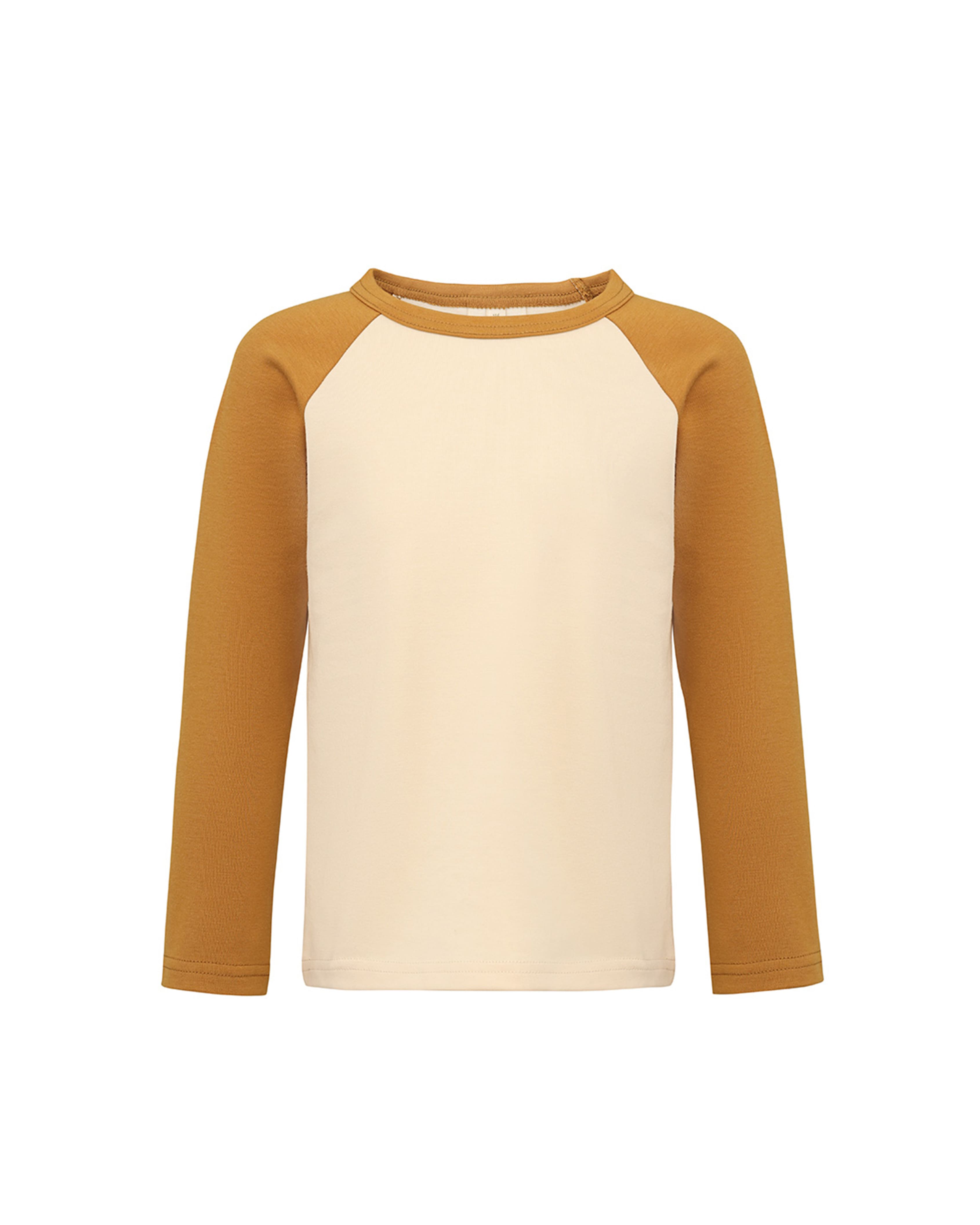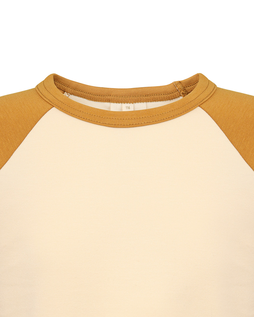Детский хлопковый лонгслив Unisex с контрастными рукавами, светло-бежевый, желтый