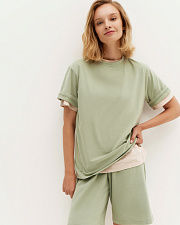Широкие рукава, обработанный рибаной вырез, который не будет растягиваться — в такой комфортно и дома, и на прогулке. Соберите комплект с шортами из нашей коллекции.