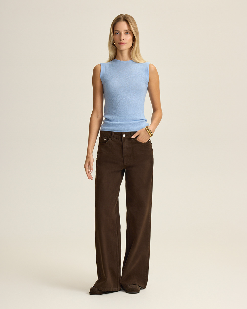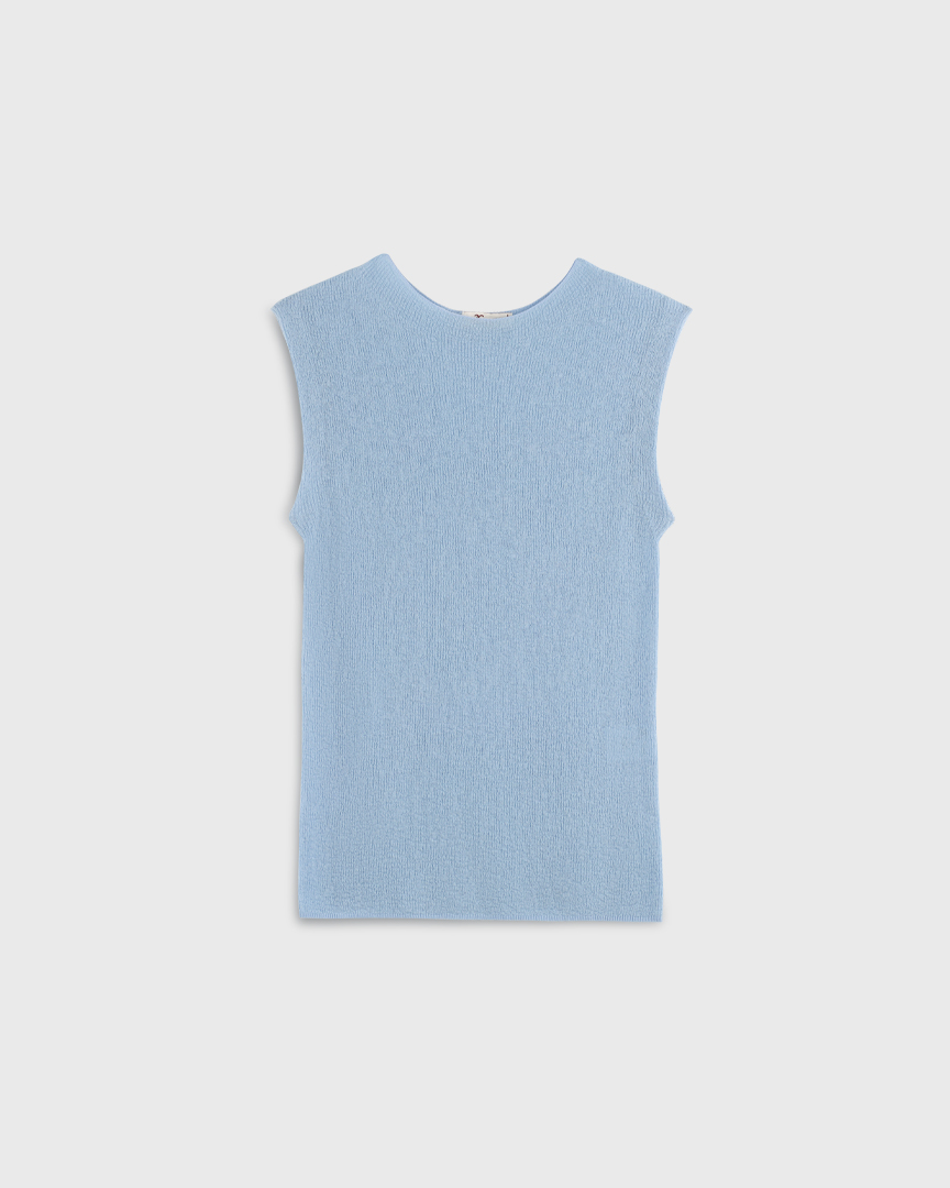 Топ без рукавов с небольшим воротом-стойкой, из тонкого трикотажа на основе шерсти и кашемира. Мягкий, деликатный к телу материал и облегающий силуэт создают изысканный базовый слой.