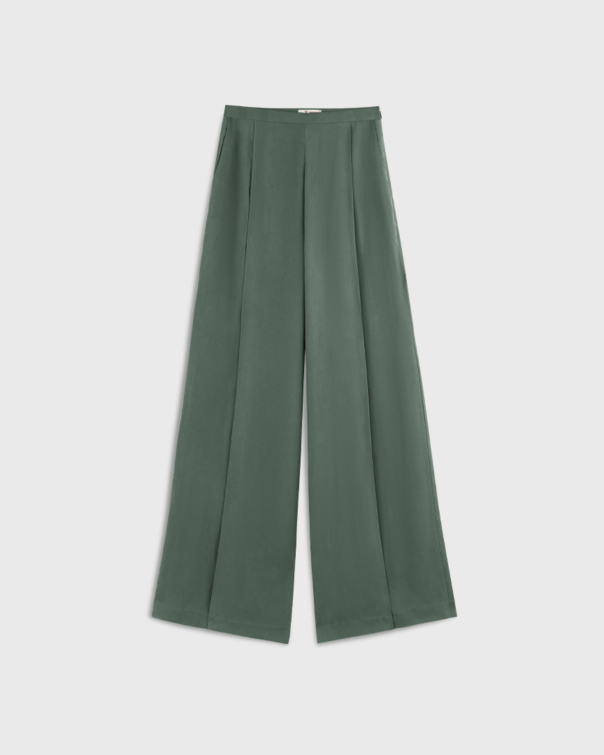 Свободные брюки из купро с районом, зеленый хвойный