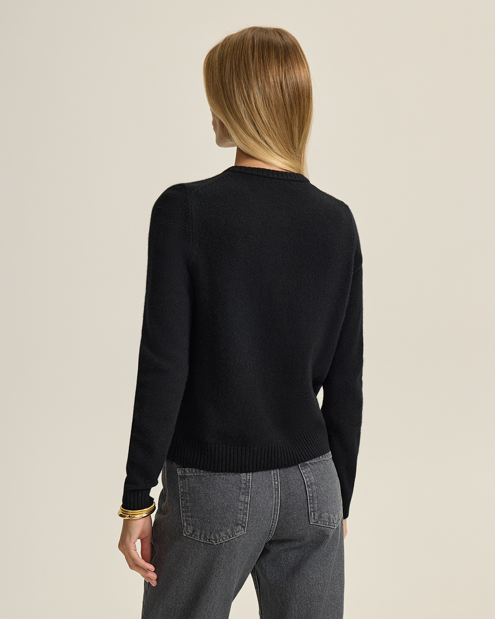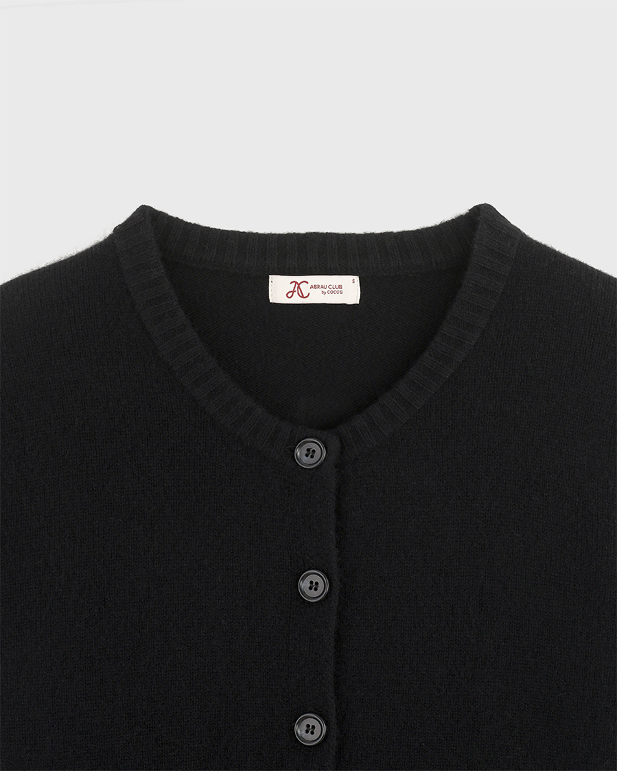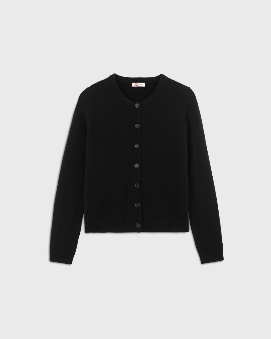 Кардиган из 100% шерсти плотной вязки с круглым вырезом и застёжкой на пуговицы. Тёплый, мягкий и универсальный — можно носить застегнутым как джемпер или как кардиган поверх лаконичных топов.
