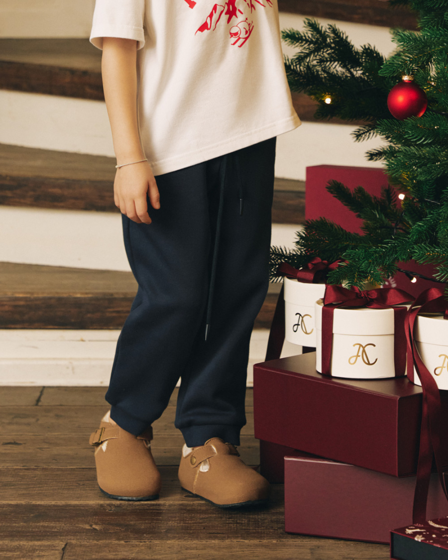 Детские джоггеры на флисе. Подойдут как мальчикам, так и девочкам. Регулируемый пояс на шнурке, передние карманы, эластичные манжеты. Вышивка монограммы Abrau Club спереди.