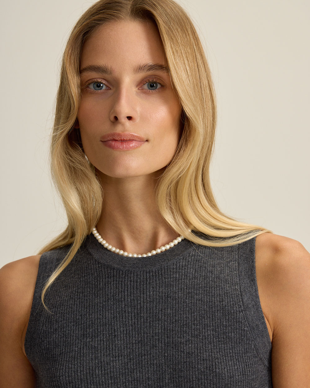 Мягкий вязаный топ в рубчик из трикотажа на основе шерсти мериноса. Волокна тонкой овечьей шерсти придают материалу естественную терморегуляцию и мягкость, а нейлон и акрил — стойкость к деформации и сохранение формы. Топ комфортно прилегает к телу, дышит и сохраняет тепло, оставаясь при этом лёгким и упругим.
