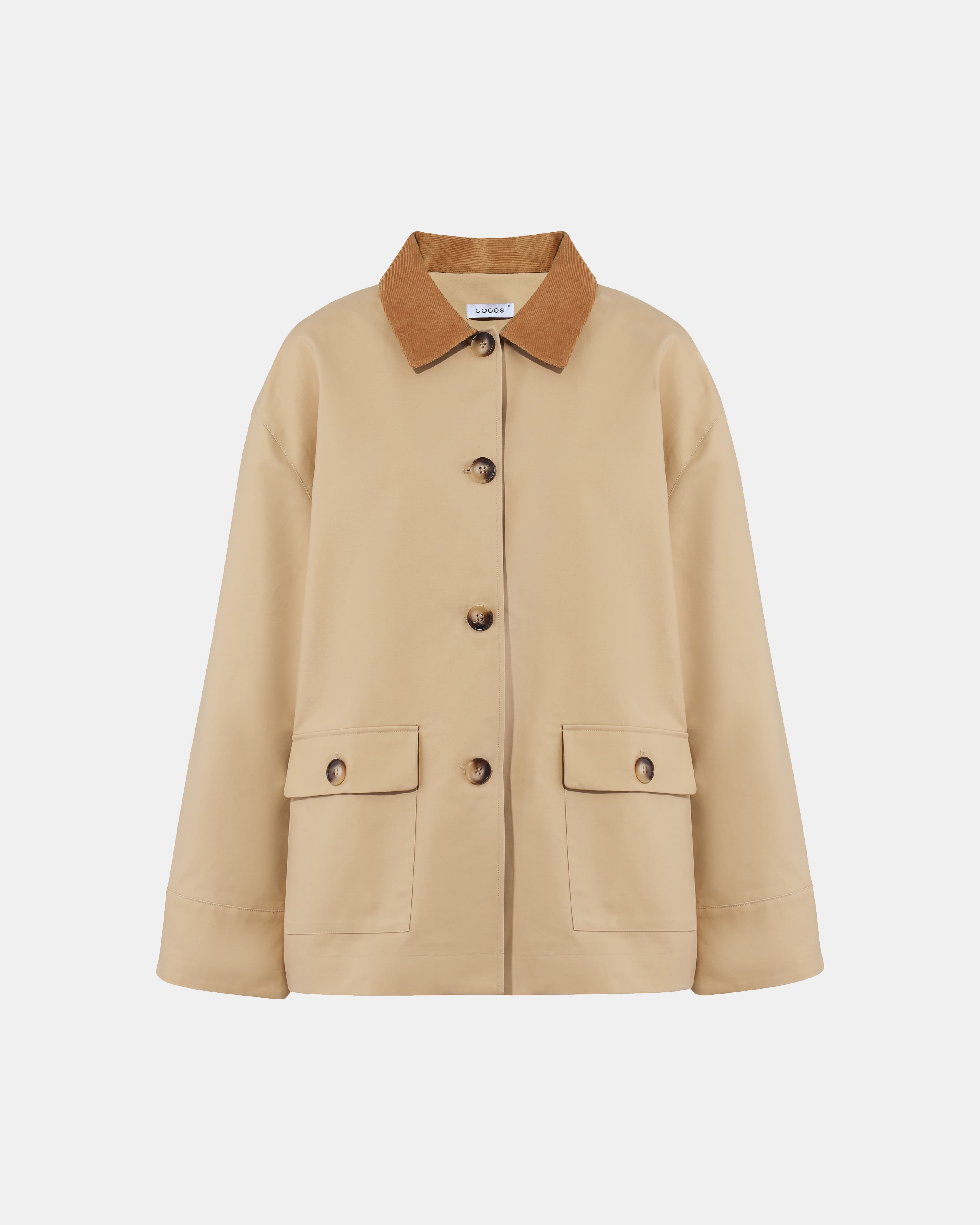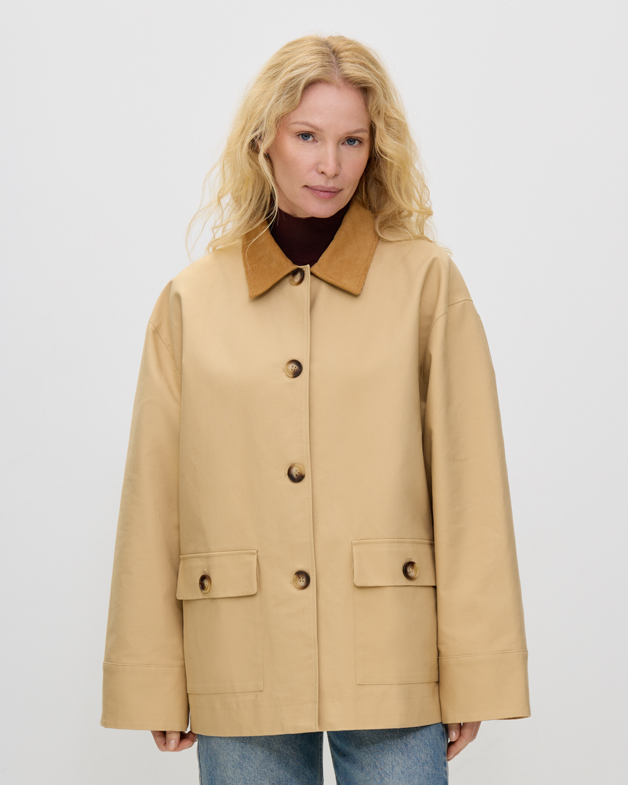Хлопковая куртка с вельветовой отделкой, бежевый