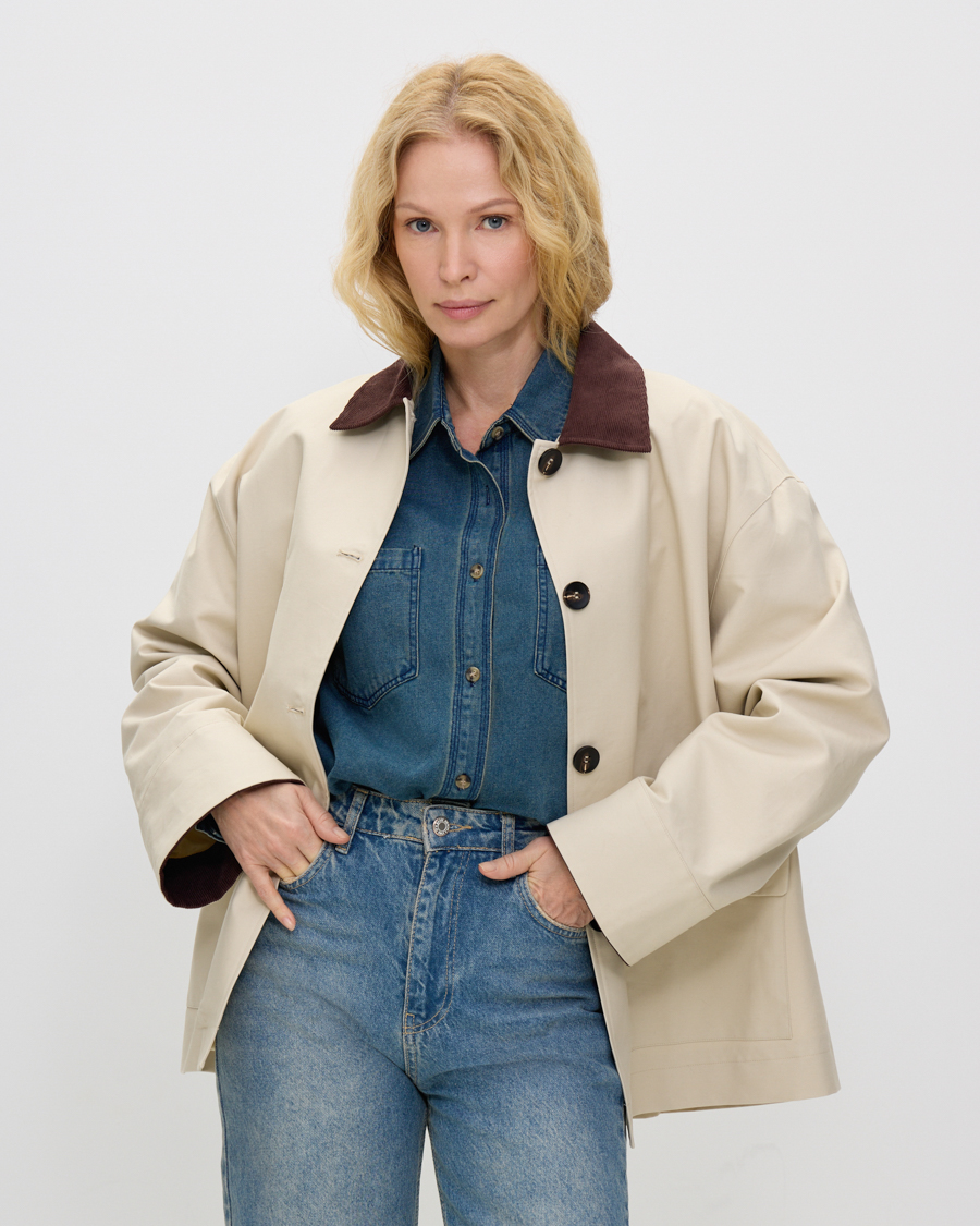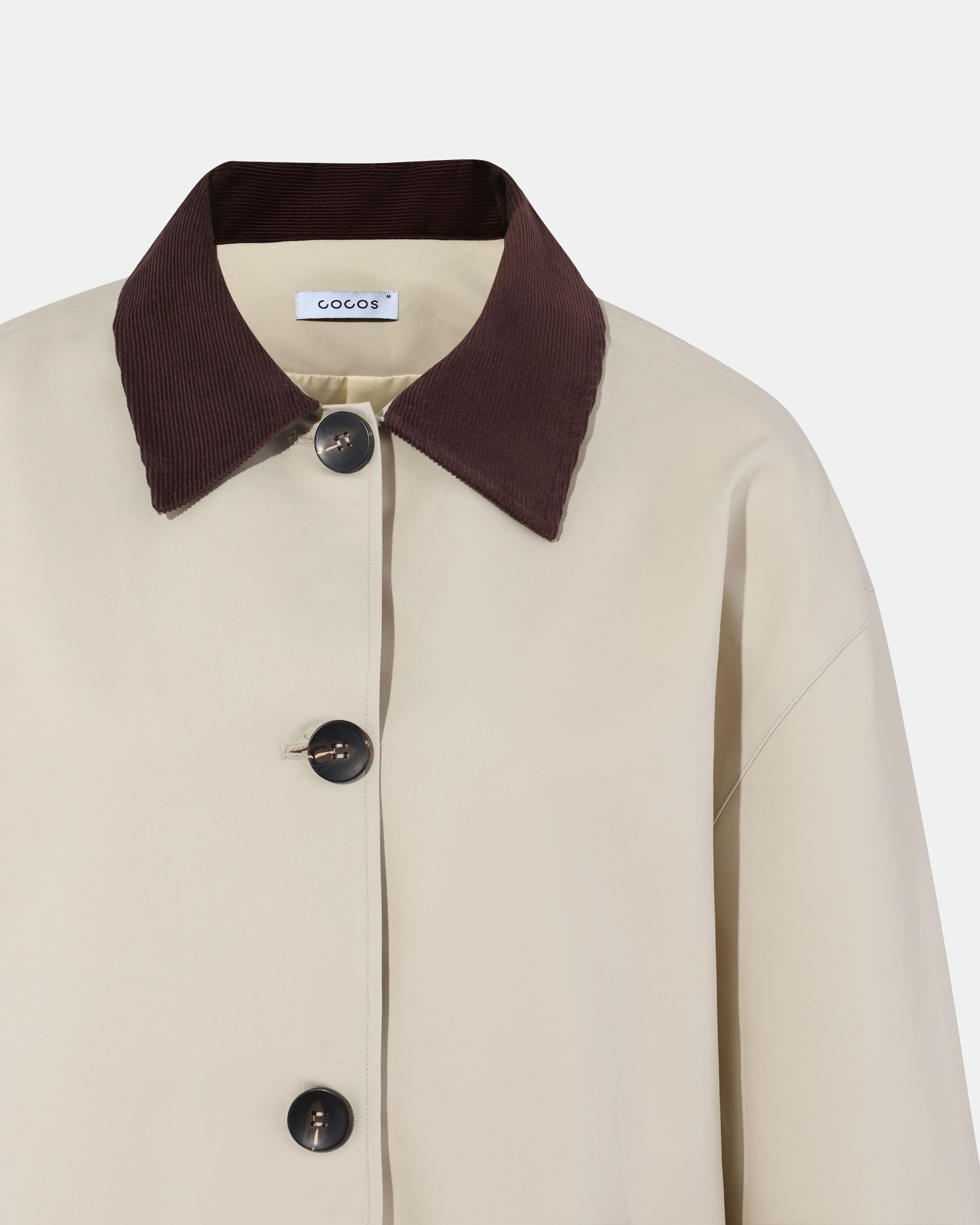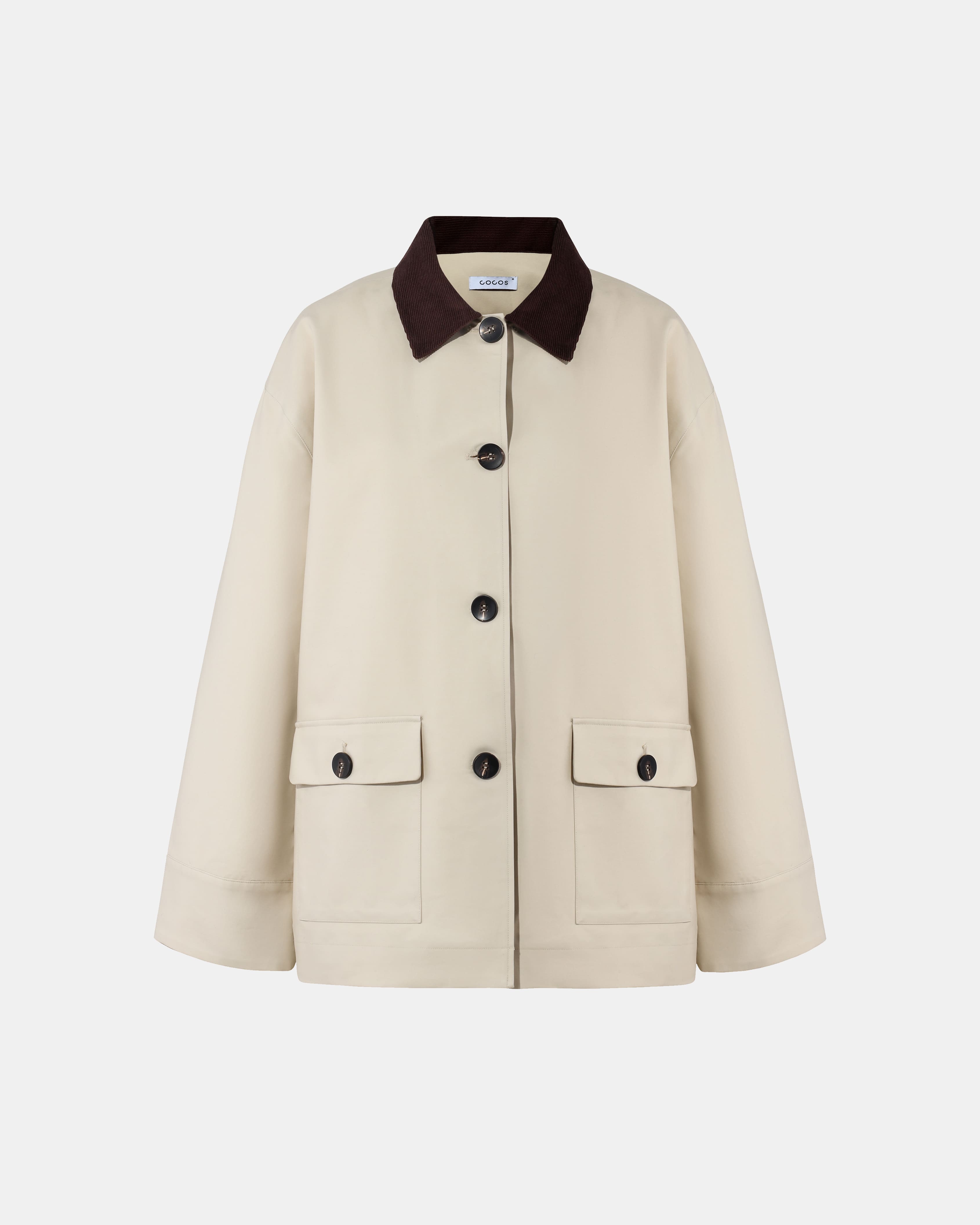 Хлопковая куртка с вельветовой отделкой, светло-бежевый