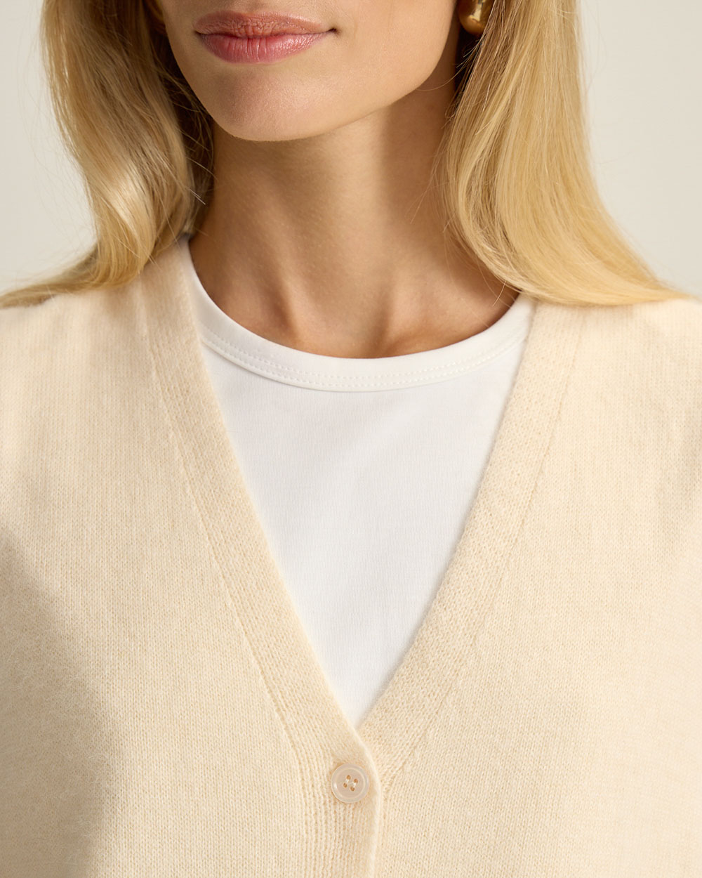 Жилет на пуговицах с шерстью ангоры, молочный
